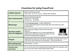 En sammanställning av vad man ska tänka på när man gör en PowerPoint presentation.